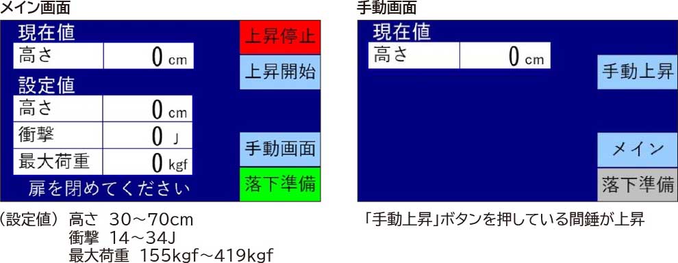 タッチパネルで錘落下高さの設定が可能